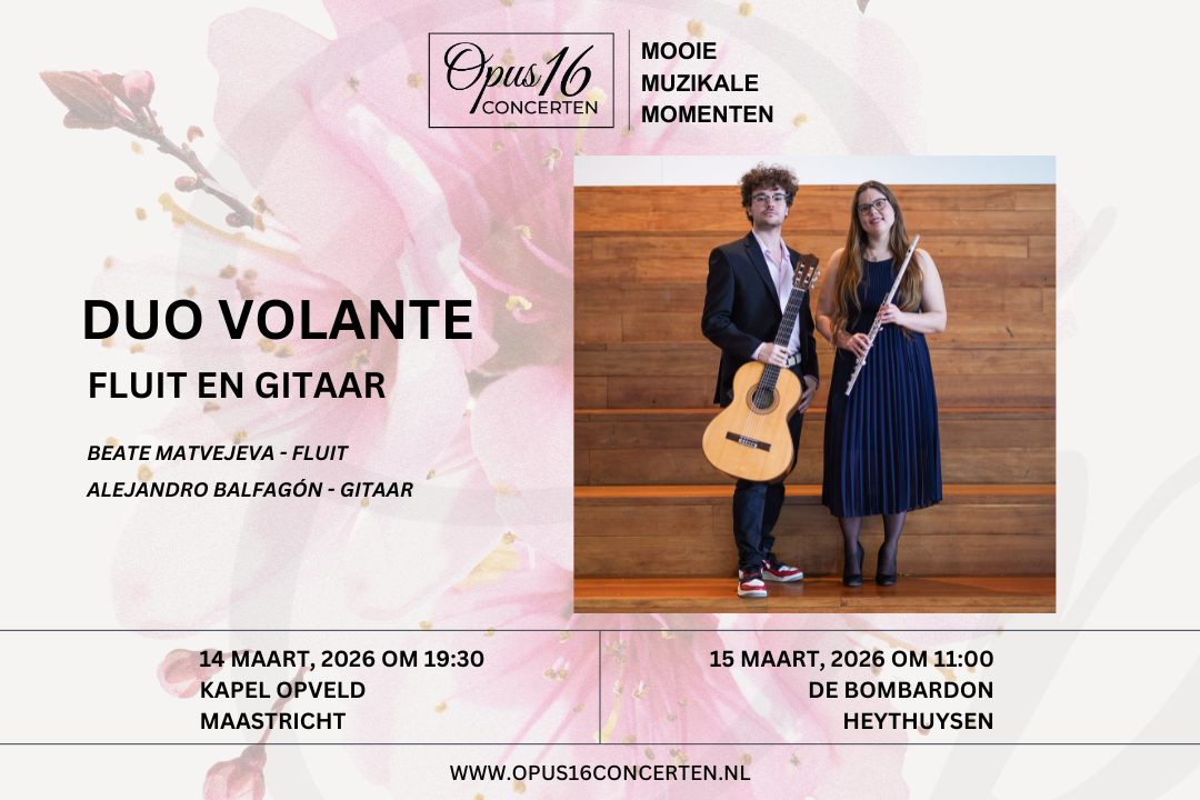 Opus 16 Concerten is opgericht om schoonheid te brengen in het alledaagse leven en klassieke muziek te presenteren door de luisteraar te verbinden met iets dat groter is dan ons eigen bestaan. We brengen intieme concerten van hoog niveau die ons publiek inspireren en beroeren. Met jonge professionals biedt Opus 16 u prachtige muzikale momenten die raken en u iets bijzonders laten beleven. We bieden ook jonge talenten de kans om op te treden en hun groei te stimuleren door middel van educatie, zodat de volgende generatie musici kan delen in deze tijdloze kunst.