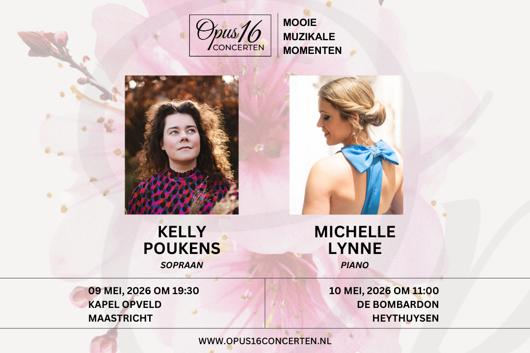Sopraan Kelly Poukens en pianiste Michelle Lynne vieren Moederdag met een sprankelend programma vol geliefde werken van Leonard Bernstein. Geniet van hoogtepunten uit Peter Pan, West Side Story en de Chichester Psalms, gebracht met charme, flair en humor.